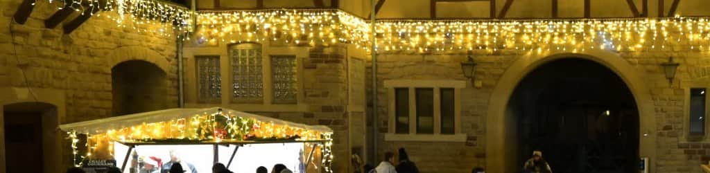 Le marché de Noël des Fééries de Noël à Hombourg-Haut transforme la cité médiévale en un univers féérique : près de 29 chalets artisanaux, une patinoire, un sentier des lanternes et des chants de Noël.